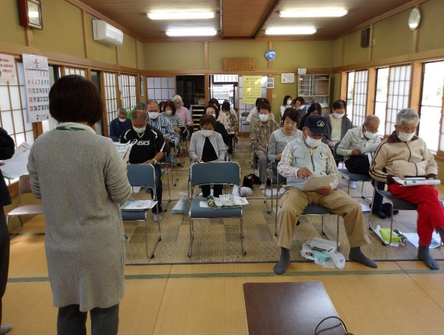令和7年5月28日(水)、大渕上区(9区)公会堂において大渕区・野巻区の皆様を対象に、ふれあい広場を開催しました。 開催内容は、理学療法士さんによる健康体操(骨折予防)、町保健師さんのお話などをお楽しみいただきました。