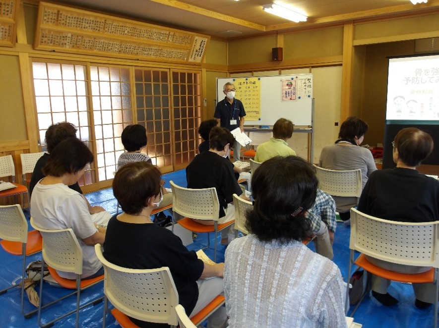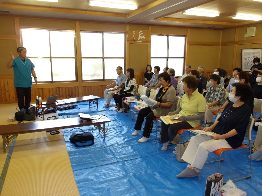 令和7年9月17日(水)、下原区公会堂において原区・下原区の皆様を対象に、ふれあい広場を開催しました。 開催内容は、理学療法士さんによる健康体操(骨折予防)・握力測定・町保健師さんのお話などをお楽しみいただきました。