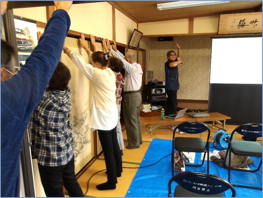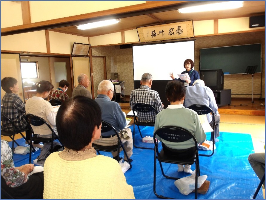 令和7年10月15日(水)、国神区公会堂において国神区・金崎区の皆様を対象に、ふれあい広場を開催しました。 開催内容は、理学療法士さんによる健康体操(骨折予防)・握力測定・町保健師さんのお話などで、お楽しみいただきました。
