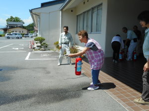 平成30年8月2日(木)午前、長生荘管理業務に携わるシルバー会員、事務局職員、皆野町包括支援センター職員並びに社会福祉協議会職員を対象として、消防訓練(火災通報訓練、消火器訓練)を実施しました。