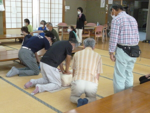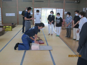 令和4年7月8日(金)午前、長生荘管理業務に携わるシルバー会員、事務局職員、皆野町包括支援センター職員並びに社会福祉協議会職員を対象として、救急救命訓練を実施しました(写真)。 |