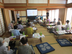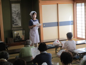 今回、健康体操、健康のお話、食生活改善のお話を聞き、試食(持ち帰り)を楽しんでいただきました。